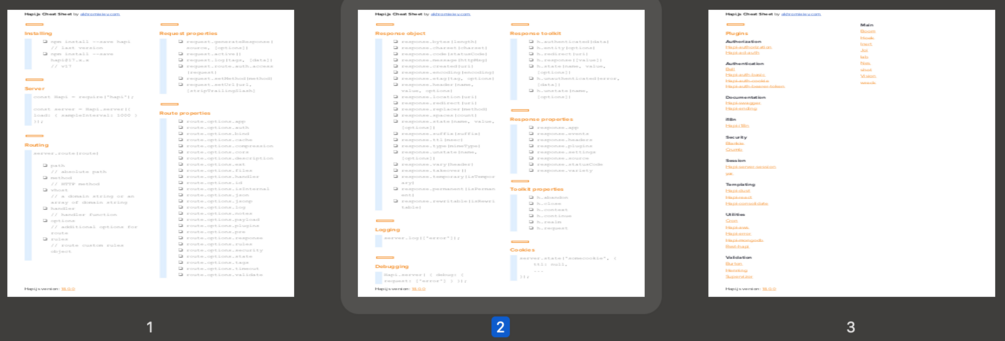 A quick guide for Hapi.js v18. Response and request methods, popular plugins and other useful information.